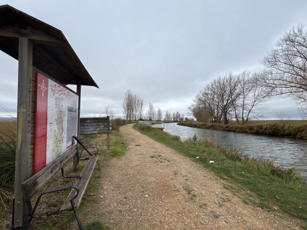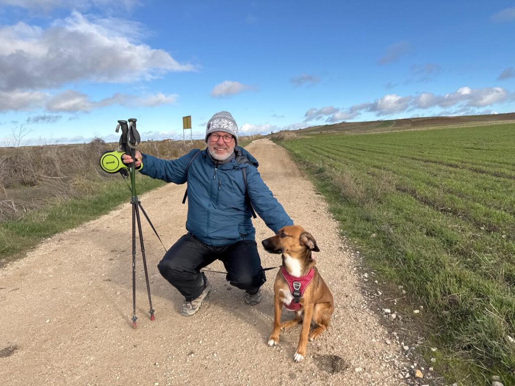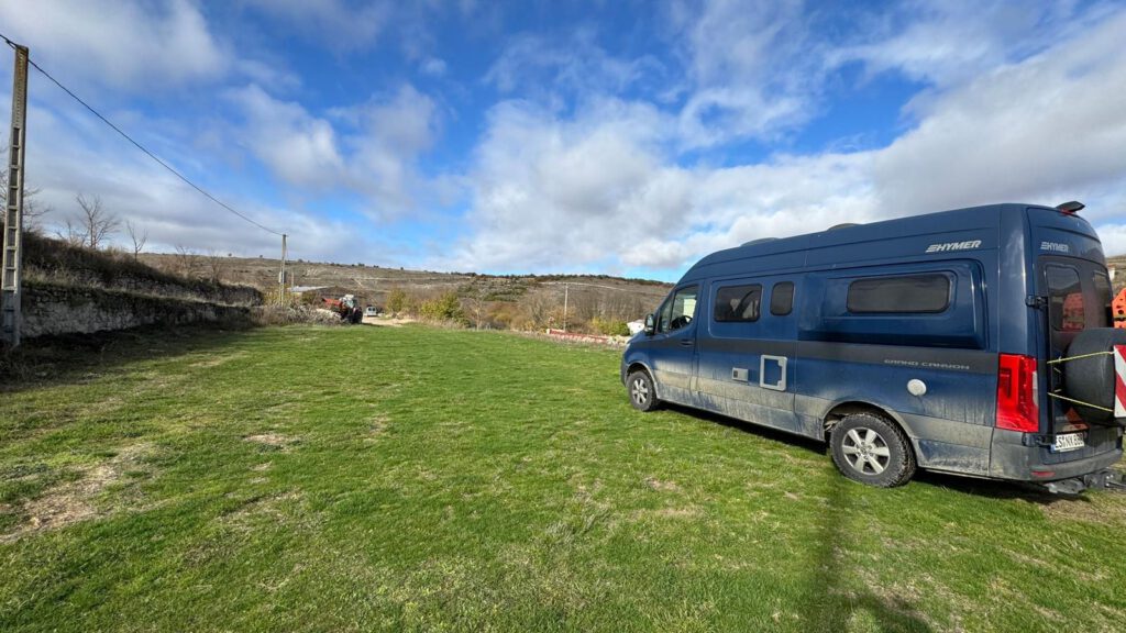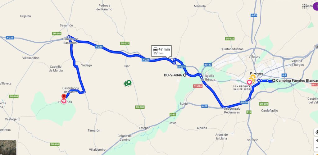 Vom Campingplatz ging es gegen 10 Uhr zum ca. 10 km entfernt liegenden Gratis Wohnmobil Stellplatz bei Tardajos. Wir wollten hier aber nicht übernachten. Es war nur als Startplatz für mich gedacht. Den von hier aus wollte ich meine 2023 begonnene Pilgertour auf dem Camino Frances fortsetzen. Damals hatte ich in Burgos nach ca. 400 km meinen Jakobsweg abgebrochen. Das schlafen in den Herbergen ( Schnarchen, Betten Geknarre etc. ) hatte mich damals zu viel gestresst und ich konnte damals nicht vernünftig schlafen. Jetzt hatten wir unser eigenes Bett im Sprinter dabei.