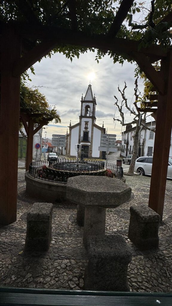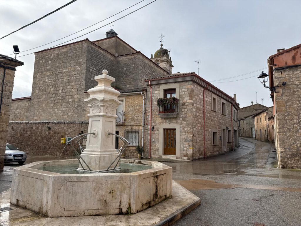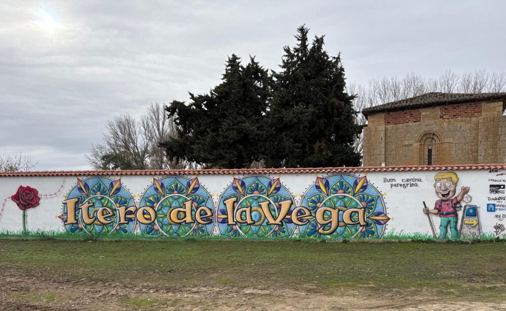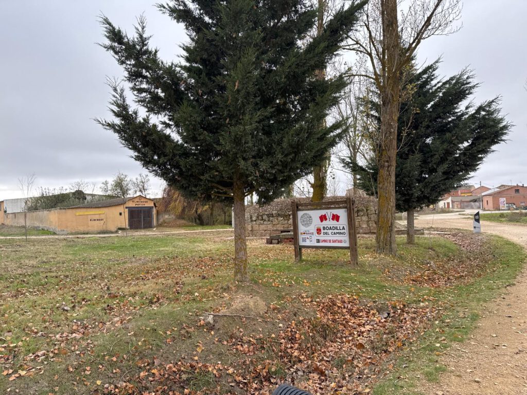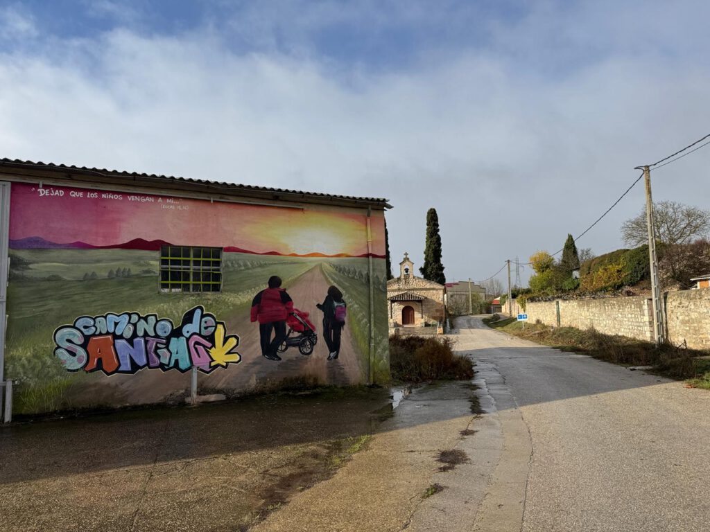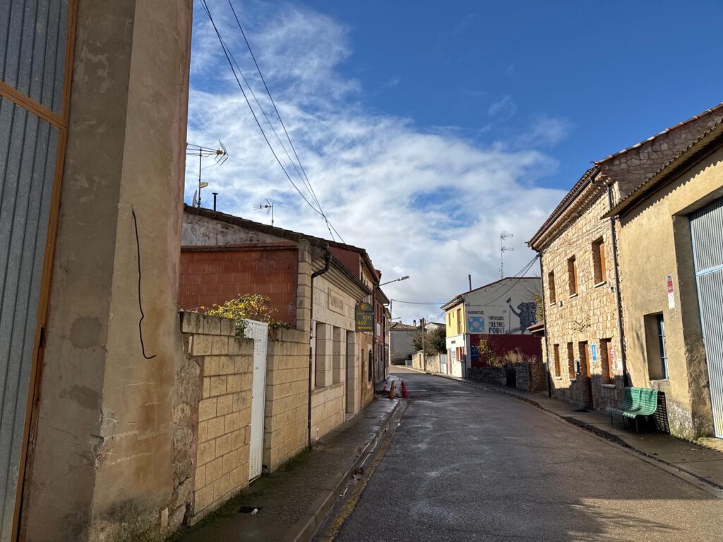 Im Ort gibt es viele Herbergen und Restaurants welche in der Hauptpilgerzeit viele Pilger übernachten lassen sowie Trank und Speis anbieten. Jetzt als ich durchwanderte war bis auf einen kleinen Supermarkt alles was mit Pilgern zu tun hatte geschlossen. In dem kleinen Supermarkt lies ich mir einen Stempel in meinen Pilgerpass geben. Die Kirche welche ich kurz besuchen wollte war wie alle Kirchen bislang, verschlossen. So setzte ich meinen Weg fort und war schon wieder nach kurzer Gehzeit aus dem Ort in die freie Natur gelangt.