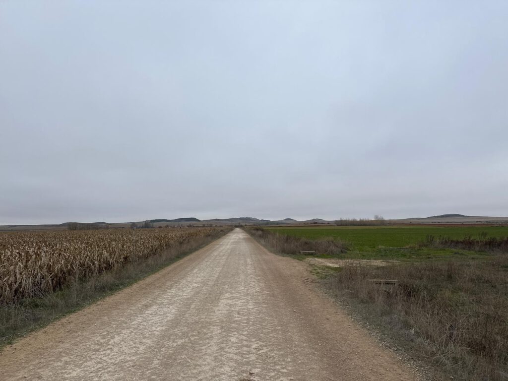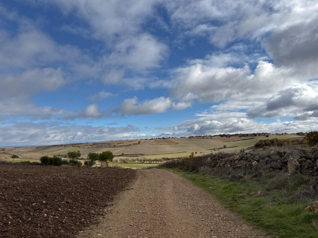 Aber das war jetzt nicht wichtig. Ich hatte eine große Freude auf diesem weiteren Weg zu gehen. Diese Etappe führt durch Kastilien. Im Sommer unheimlich heiße Wege ohne Schatten durch endlose Felder. Jetzt im November in guter Kleidung war es sehr angenehm zu gehen, denn ich musste nicht schwitzen.
