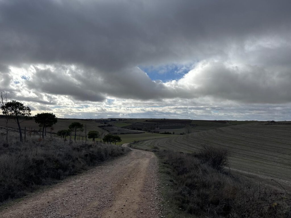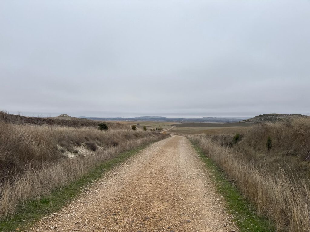 Für mich ist es ein großes Privileg die Zeit zu haben, um den Weg ohne Zeitdruck zu gehen. Deshalb genoss ich jeden extra Meter. Der Weg führte mich durch kleine mittelalterliche Ortschaften, durch die vor mir schon Millionen andere Pilger unterwegs waren. Hin und wieder ging es Bergauf und Bergab. Mein höchster Punkt war wohl bei 940 Meter über Null. Auf dieser Ebene wanderte ich einen großen Teil meinem Ziel in Hontanas entgegen. Im Sommer gibt es hier keinen Schatten, jetzt freute ich mich wenn der Himmel wieder aufbrach, die Sonne herauskam und das Grau der Schneewolken vom Wind beiseite geblasen wurde.