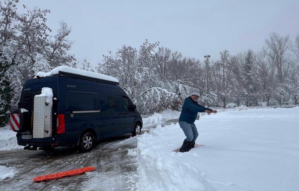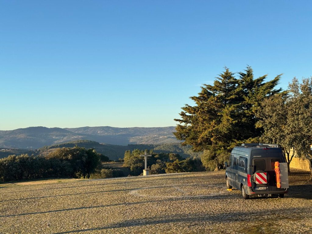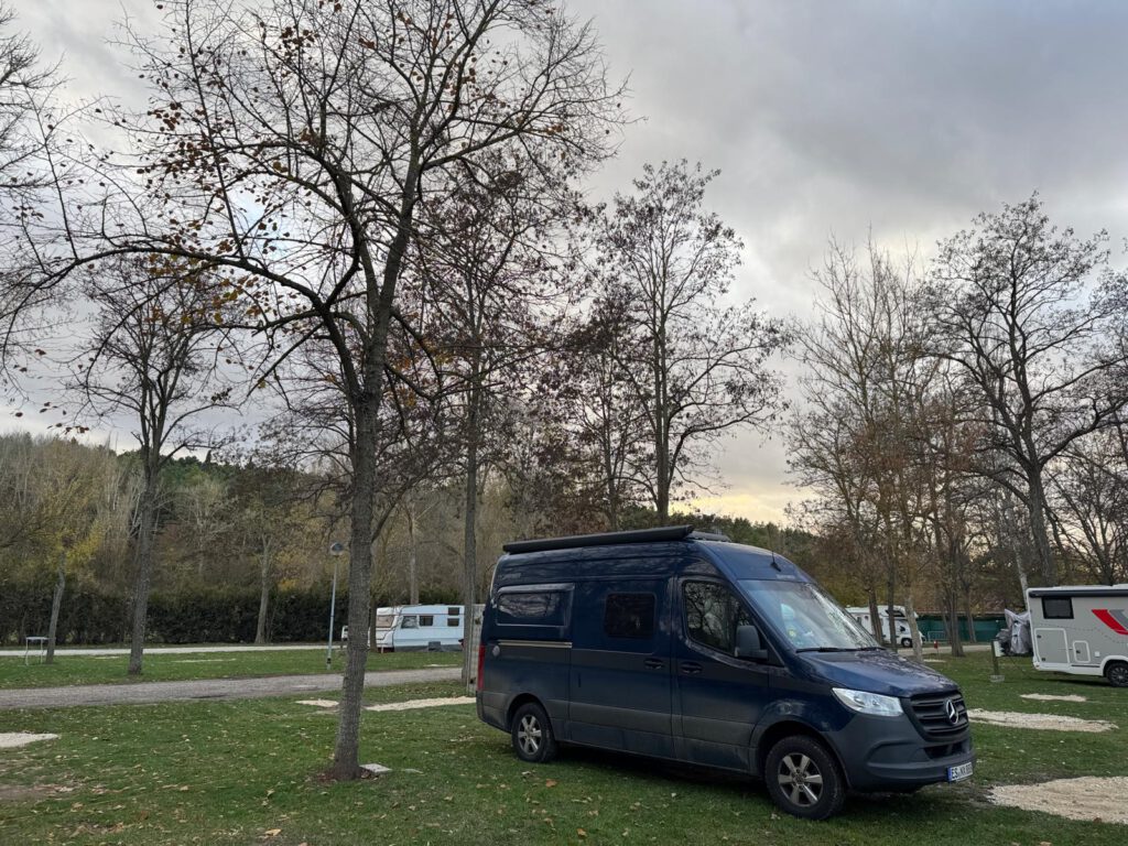 Somit bin ich mit Leo zuerst zu einer Tankstelle gefahren, danach direkt zum Campingplatz von Burgos, welcher etwas außerhalb im Grünen liegt. Dort angekommen habe ich erstmal mit der Stromversorgung gekämpft. Wenn Strom schon im Übernachtungspreis von 27€ dabei ist, dann will ich auch den Landstrom benützen können. Dies stellte sich als nicht so einfach heraus. Weil zum einen ich nicht unter zu vielen Bäumen stehen wollte, da sonst Starlink nicht ideal funktioniert, zum anderen sollte auch eine funktionierende Stromsäule in der Nähe ( innerhalb 15 Meter Kabellänge ) vorhanden sein. Es gab ein paar Marode Stromsäulen aus denen kein Strom fließen wollte. Nach einer Weile hatte ich dann auch einen idealen Platz gefunden. Strom und Starlink funktionierte tadellos. Im übrigen sind die Bäume jetzt ja ohne Blätter und somit funktioniert Starlink auch ganz gut wenn Bäume im Sichtfeld zu Musk’s Satelliten sind. 300 MB/Sek Download Speed und ca. 50 MB/Sek Upload Speed habe ich in der Starlink App messen können.