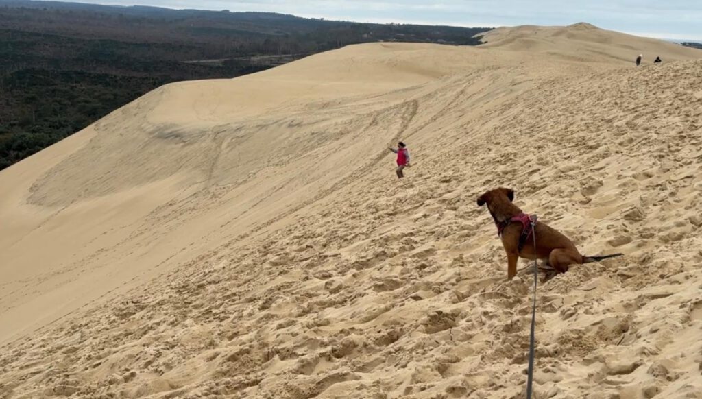 Fotos: An der großen Düne Dune du Pilat üben wir für die Marokkanische Sahara und weiter ging es zum Wohnmobilstellplatz und an den Stand von Plage de Moliets.