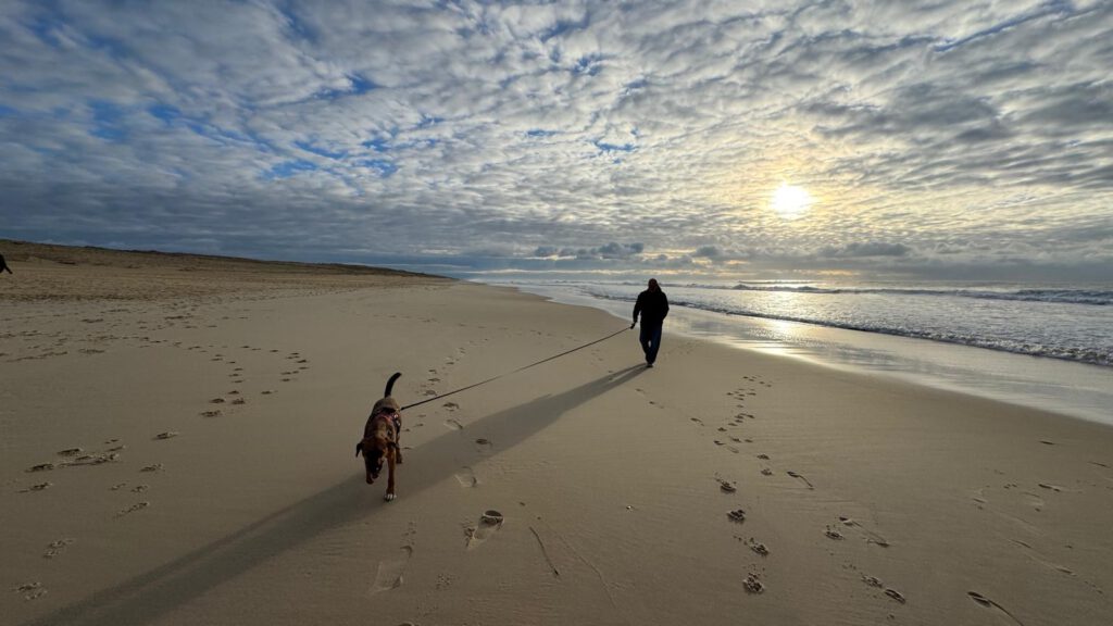 Die weite der Landschaft lädt zu schönen Spaziergängen mit Leo ein und mit ihm zwischen niedrigen Dünen auf Entdeckungstour zu gehen macht Spaß.