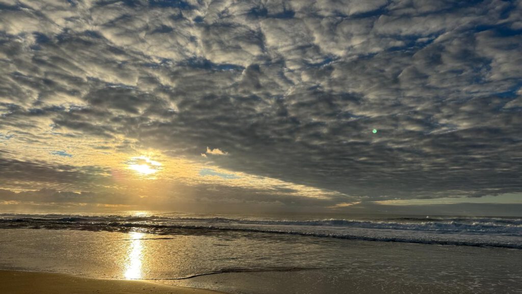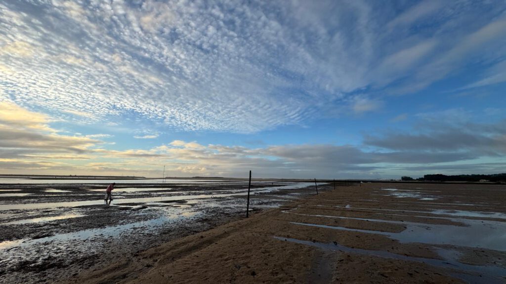 Im Anschluss ging es über kleinste Landstraßen noch ca 112 km weiter bis zu einem Urlaubsort am Plage de Moliets. Der wiederum kostenlose Wohnmobil Stellplatz der Gemeinde erlaubt das stehen für 24 Stunden. Er liegt ideal um in wenigen Minuten zum unglaublich schönen Strand, welcher hinter einer Düne liegt, zu gelangen. An diesem Strand verbrachten wir zu dritt eine schöne Zeit. Leo hatte unheimlich viel Spaß im Sand herum zu tollen während wir den spektakulären Himmel und den sauberen sowie leeren Riesenstrand fast alleine genießen konnten.