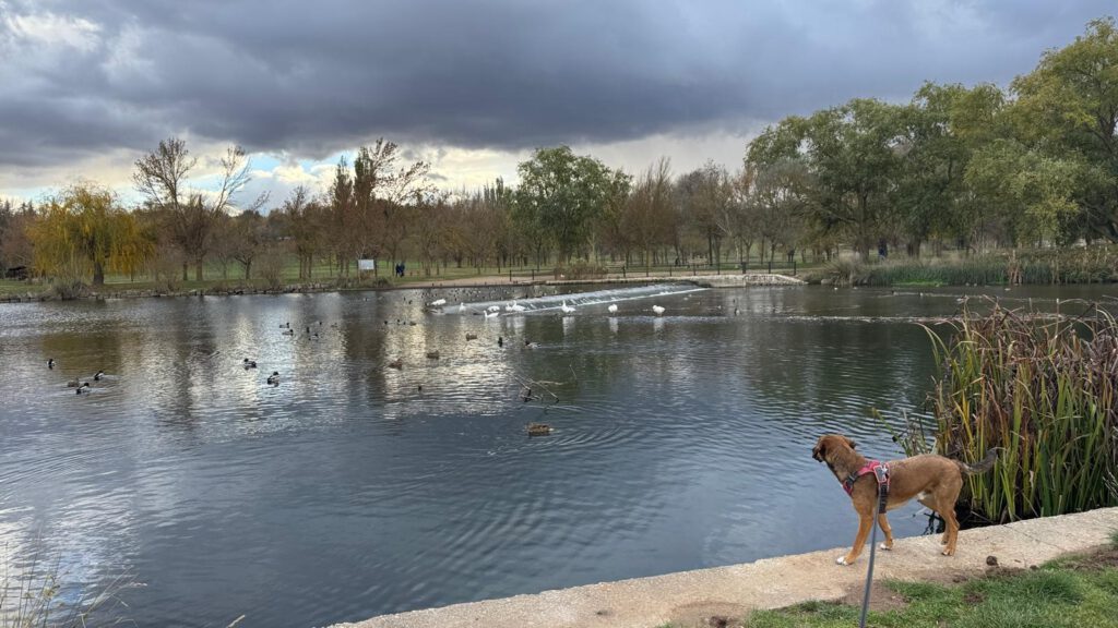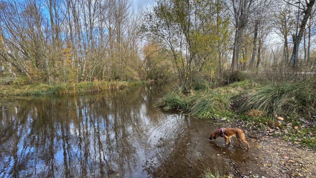 Leo und ich entdeckten in der Nähe des Gratis Womo Stellplatzes ( eigentlich ein besserer Parkplatz ) wieder einen neuen Stadtpark. Dieses mal folgte der Park dem Rio Arlanzon. Auch dieser Park war perfekt für Hundebesitzer. So hatten wir beide viel Spaß beim durch Kastanienbaum Alleen zu spazieren. Xiangyang blieb im Sprinter.