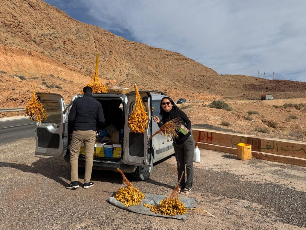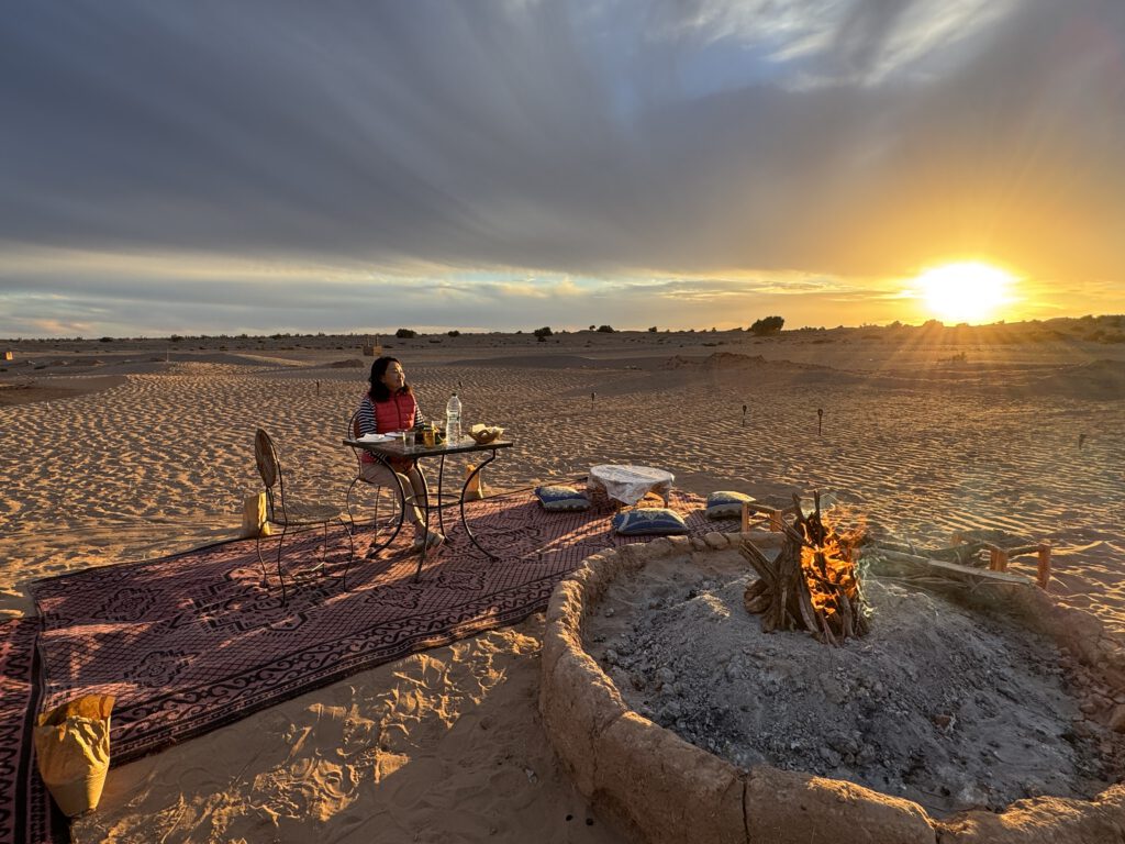 Nach einem wieder etwas früheren aufwachen hat uns das Wohnmobil Camp La Gazelle Bleue 2 frisch gemachte Marokkanische Pfannkuchen und frisches Brot direkt zum Camper gebracht. Wir waren richtig überrascht darüber und dies alles für einen Übernachtungspreis von 7€.