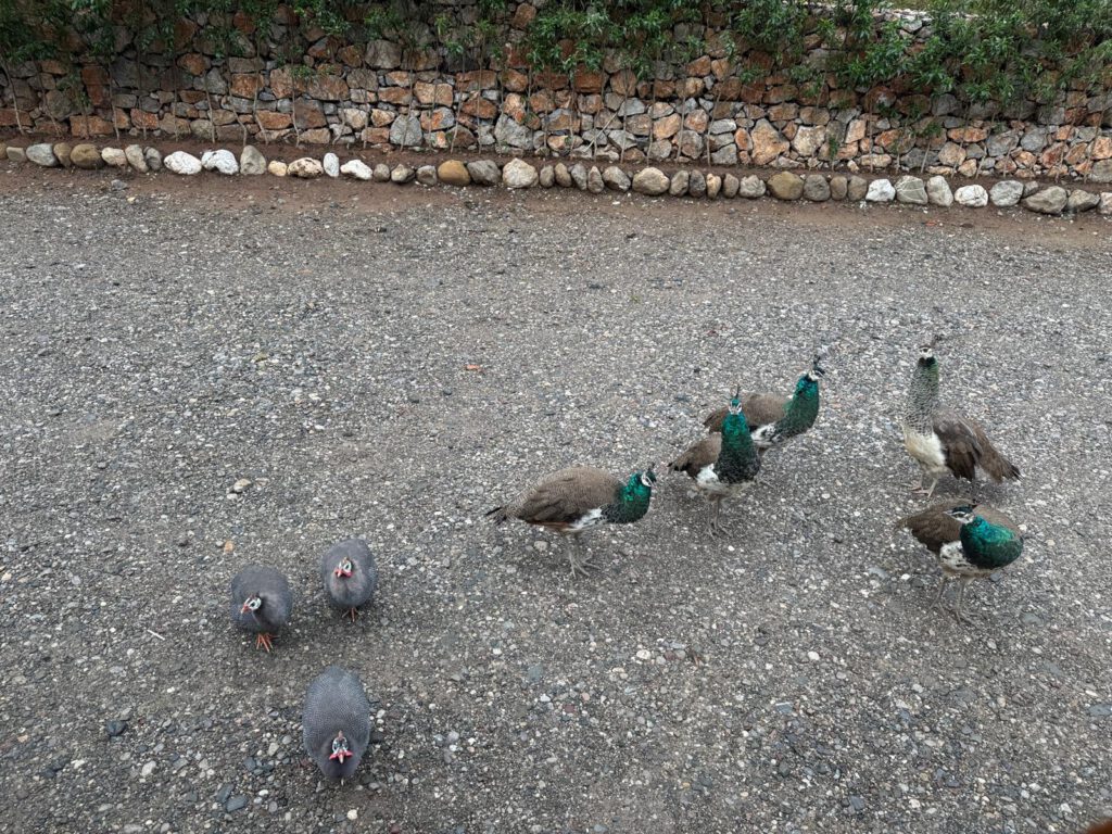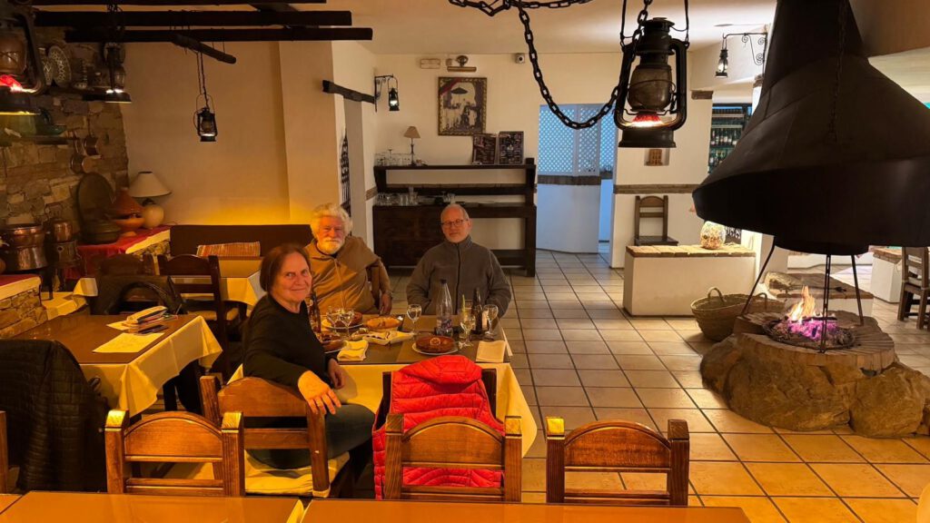 Dort angekommen waren wir die einzige Gäste. Dies war uns aber nicht unangenehm, ganz im Gegenteil. Wir wurden sehr freundlich mit Handschlag einem kleinen Gespräch, Gebäck, Nüssen und Tee auf der Terrasse mit Pool empfangen. Danach unternahmen wir getrennte Spaziergänge mit Leo in der näheren Umgebung. Im Anschluss bekamen wir ein spätes Mittagessen gegen 16 Uhr. Aber dies war so ausgemacht worden, denn wir wollten nicht zu spät essen, da wir ansonsten schlecht schlafen.