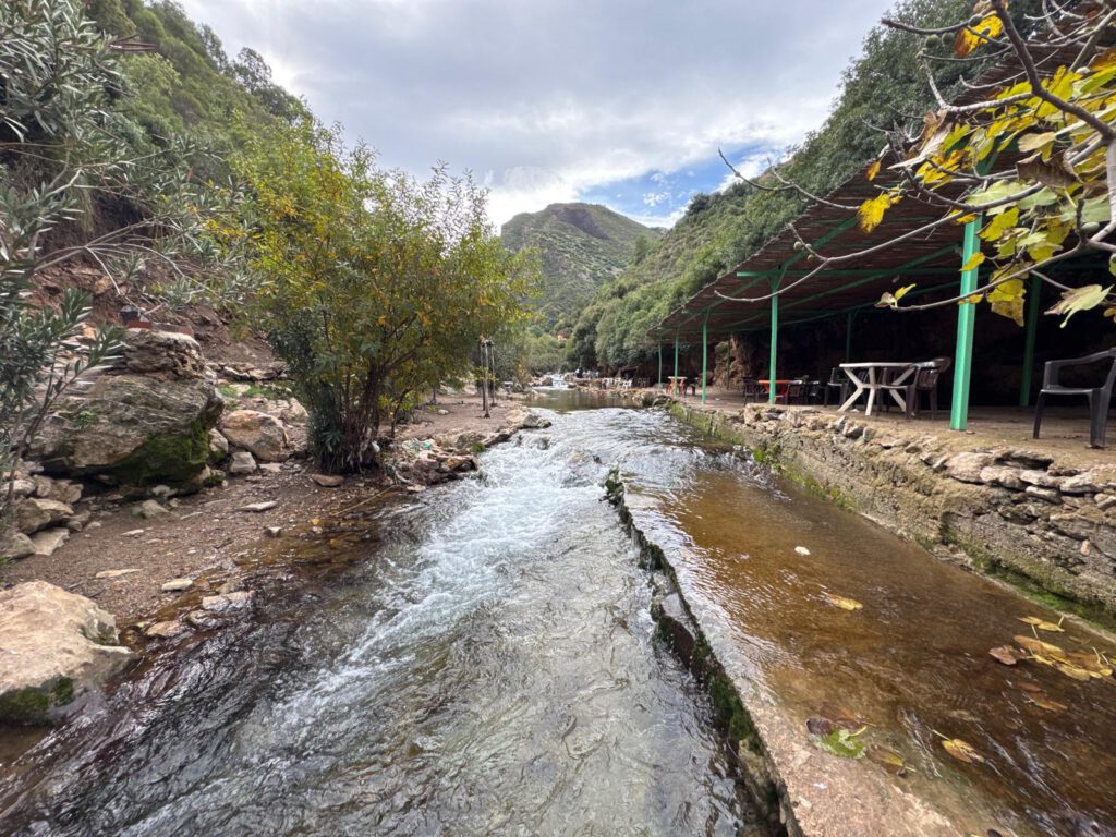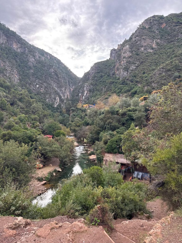 Allerdings war für uns bereits bei 1900 Meter Höhe Schluss. Eine Schranke versperrte uns den Weg. Leider ging es hier nicht weiter und so mussten wir die ganze Strecke wieder hinunter ins Tal in Angriff nehmen. Jedoch machten wir uns auf 1800 Meter Höhe ein schönes Mittagessen. Gut gestärkt ging es dann wieder weiter in Richtung Tinghir. In Tinghir folgten wir dann der N10 nach Boulmalme. Der Stadt vor der Dades Schlucht. Ohne hier anzuhalten ging es in die Dades Schluch zu unserem Übernachtungsplatz dem Campingplatz Ait Oudina. Dieser liegt nur wenige Kilometer vor der Hauptattraktion der Dades Schlucht und ist sehr schön. Für 10€ gibt es einen Freundlichen Empfang, einen Willkommen Tee mit einem extrem leckeren Gebäck, sowie heißer Dusche und einem schönen und auch noch großen Stellplatz mit Tisch und 2 Stühlen. Was will man mehr ?