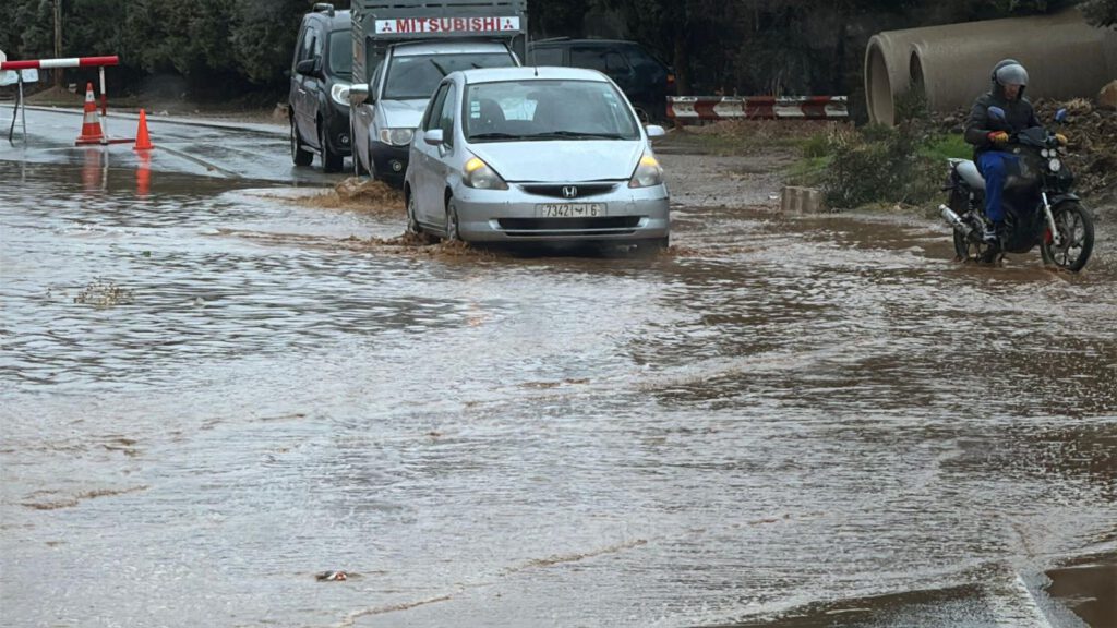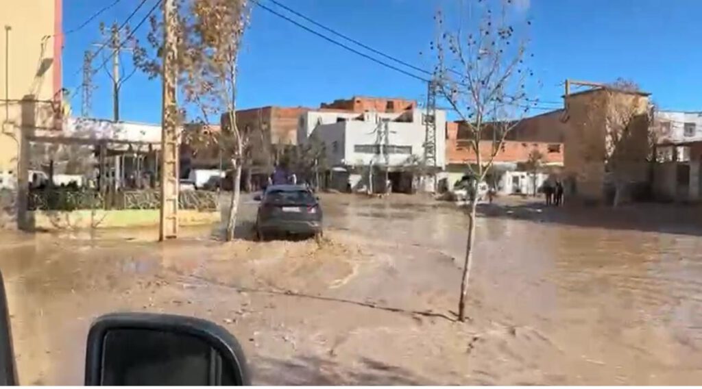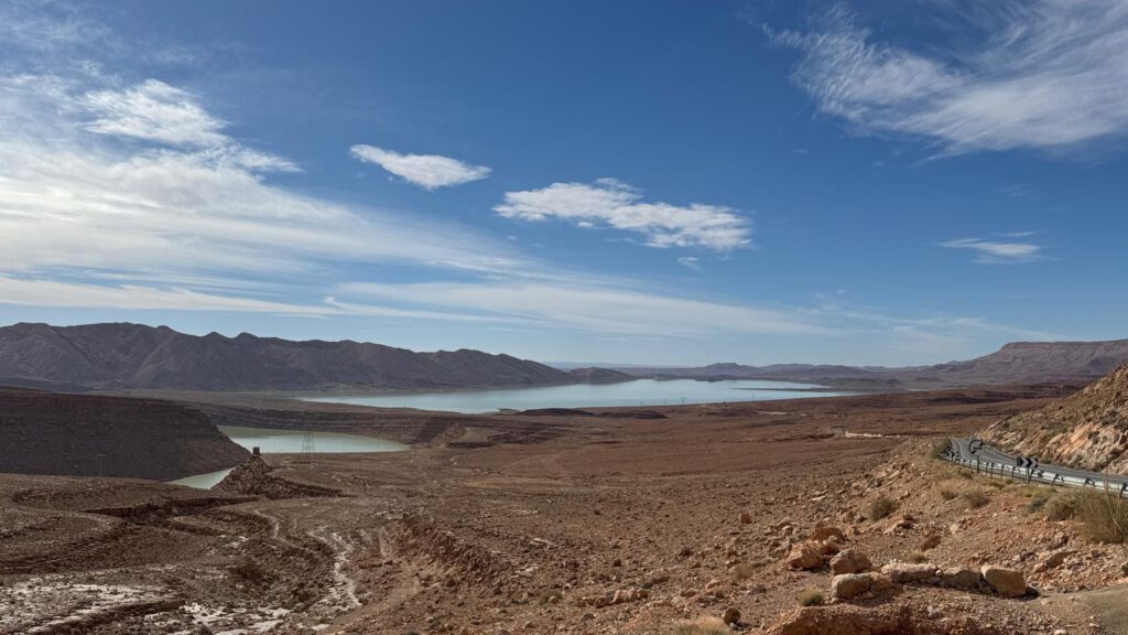 Besonders krass war es in der Stadt Tamellalt. Die Stadt selbst ist schon kurz nach der Ortseinfahrt nur hässlich und ein wenig herunter gekommen. Im Zentrum maximiert sich der Eindruck dann noch. Hier haben sich riesige Seen in der Hauptstraße durch die Regenfälle der zurückliegenden Tage gebildet. Und da es keine Kanalisation gibt, bleibt es eben als See bis es irgendwann wegtrocknet. Wir kommen langsam aber sicher durch 2 Seen hindurch. Der dritte See war aber größer und nach einem Blick nach links und rechts konnte man erkennen das man diesen See auf der linken Seite über eine Seitenstraße umfahren konnte.