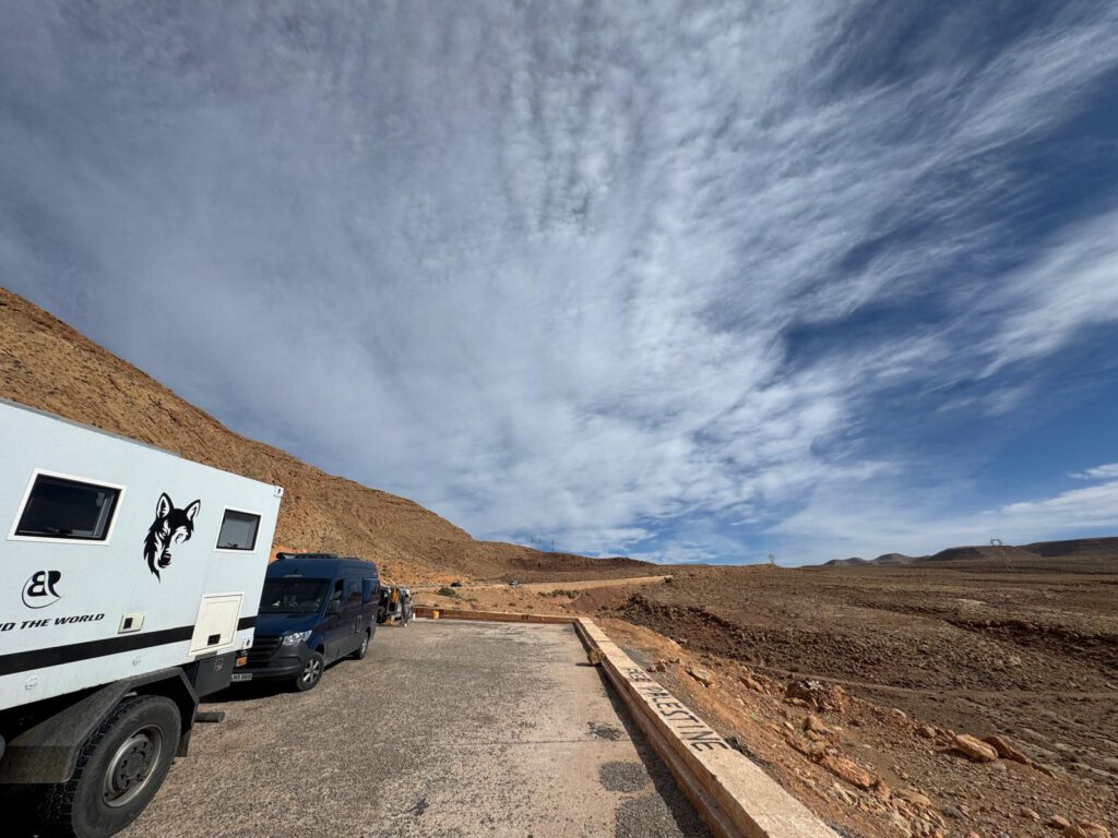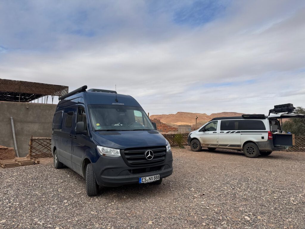 In Aït-Ben-Haddou übernachten wir auch. Auf einem eigentlich hässlichen Stellplatz. Der einzige Vorteil ist das er Zentrumsnah liegt und dazu nur 4€ kostet. Aber wenn wir nicht eine Altstadt Besichtigung gemacht hätten, wäre ein Platz außerhalb deutlich schöner gewesen. Aber so ist das halt wenn man etwas Besichtigen will und zuvor noch essen geht.