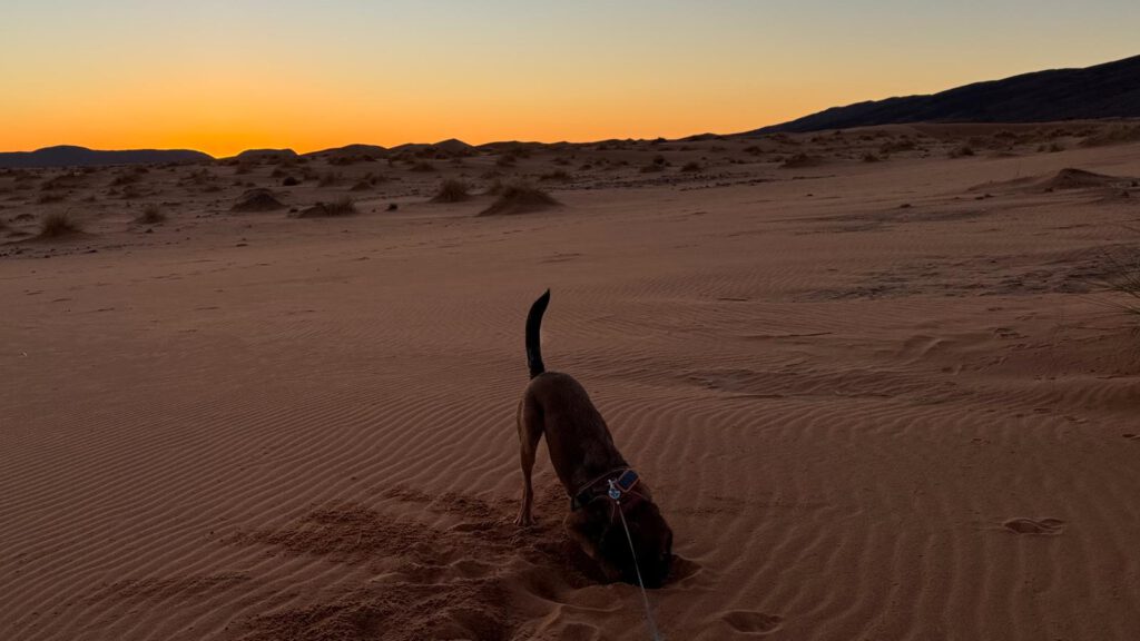 Endlich kann Leo sich auch wieder austoben. Es gibt Platz ohne Ende und zudem noch 3 liebe Camp Hunde der Besitzer. Gemeinsam unternahmen wir heute tolle Spaziergänge durch die Sanddünen.