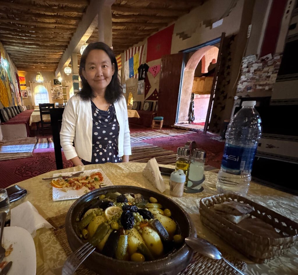 Der Nachmittag wurde mit einem leckeren von Xiangyang zubereiteten Mittagessen, Gassigehen in der Oase auf typischen Lehmwegen und entspannen verbracht. Der Abend dann im Wohnmobil, da auch hier im Süden von Marokko die Temperaturen Abends und Nachts noch unter die 10 Grad gehen.