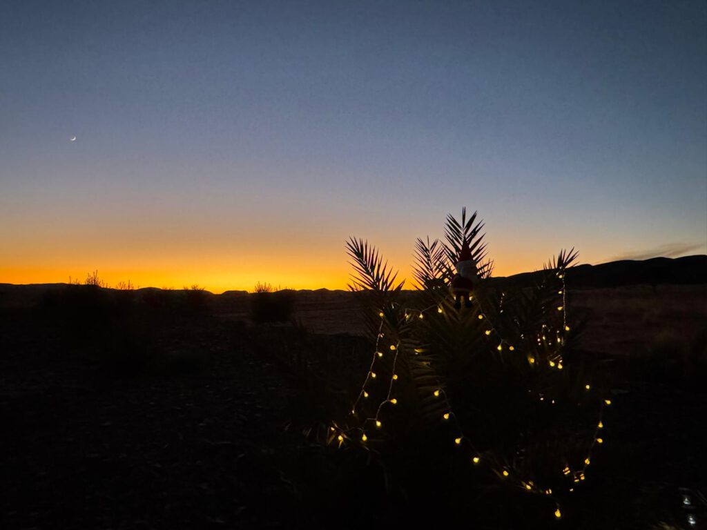 Fotos: Mir ging ein Licht auf….., Die Wüste ist auch fruchtbar, Sonnenuntergang und unser Weihnachtsbaum 🙂