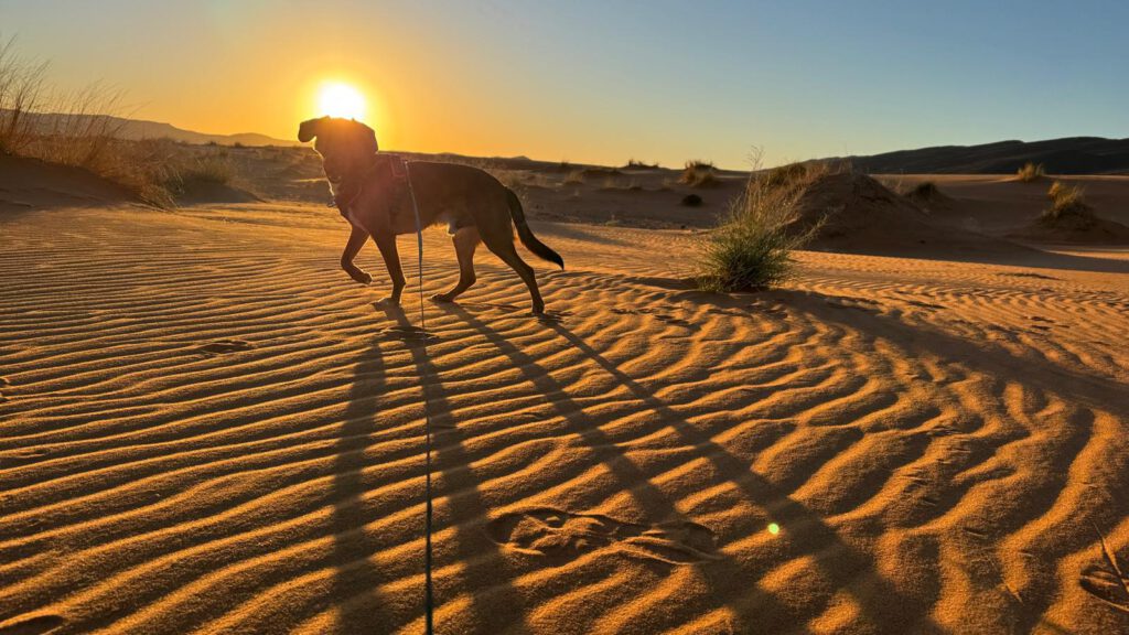 Unser Sprinter steht diesmal wieder ideal. Fast direkt an einem Sandstück der Wüste. Trotzdem ist es himmlisch ruhig, da hier keine Jeeps, Quads, Mopeds usw. im Sand herumbrettern. So hatten wir uns das ja auch für heute vorgestellt. Nichts gegen die letzte Übernachtung mit den Geräuschen. Wobei die gegen 22 Uhr verstummt waren. Das gehört eben hier auch dazu.