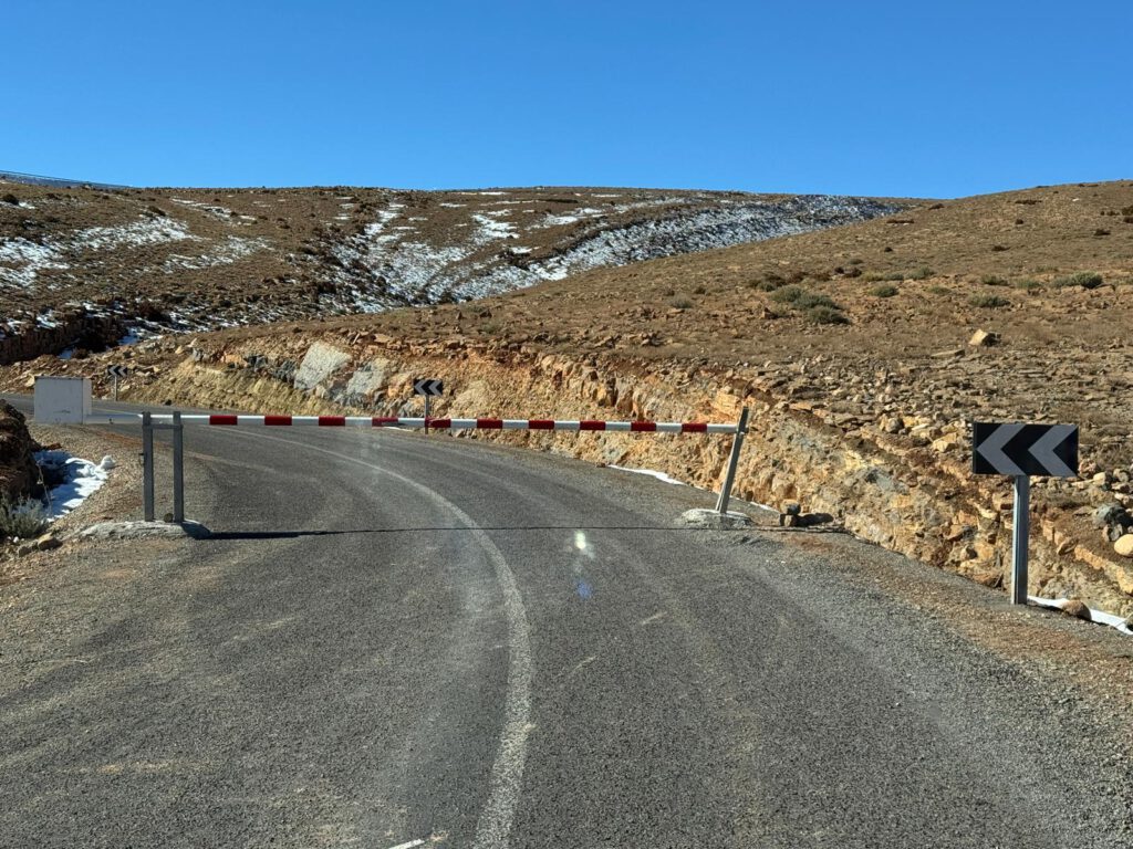 Unsere Reisebekanntschaft Roland und Brigitte hatten es gestern versucht über den Pass, welcher 2100 Meter hoch ist zu kommen. Dadurch spart man sich viele Kilometer Fahrt zur Dades Schlucht. Sie mussten aber abbrechen da viele Schneeverwehungen die Straße auf ca. 2300 Meter Höhe blockierten. Da aber heute das Wetter top war und es zudem sehr warm war, hofften wir ohne größere Probleme den Pass zu schaffen.