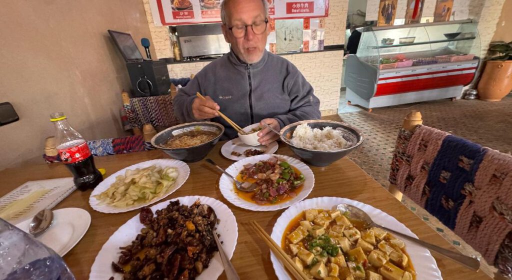 Insbesondere heute mal nicht Marokkanisch sondern Chinesisch. Da diese Stadt natürlich auch Chinesen anlockt, hat sich vor 1 Jahr ein China Restaurant angesiedelt. Leckere Authentische Sichuan Küche wird angeboten. Allerdings ohne Schweinfleisch und ohne Tsingtao Bier. Für Marokkanische Verhältnisse allerdings recht teuer. 50€ hat uns das Mittagessen gekostet. Dafür wird aber frischer hausgemachter Tofu, handgemachte Nudeln als Gericht gereicht. Neben noch 3 anderen typisch Chinesischen Sichuan Gerichten. Also auf jeden Fall zu empfehlen, wenn man nach Wochen mal etwas anderes als Marokkanisch essen will.